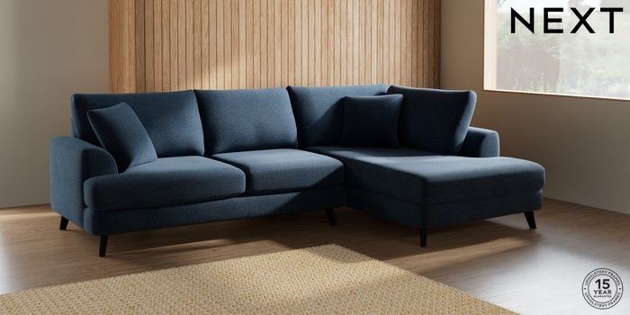 7.0.3 Buy Parker Medium Corner Chaise - Right Hand Ripple Chenille Dark Blue Low Retro Tapered - Dark from the Next UK online shop Click here to use our accessible website
