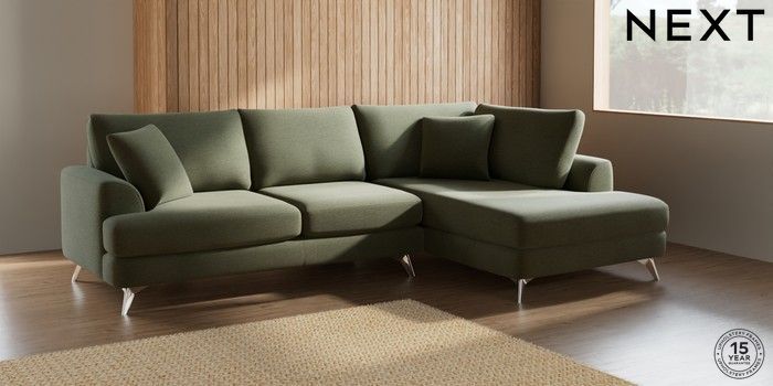 7.2.5 Buy Parker Medium Corner Chaise - Right Hand Ripple Chenille Mid Moss Green High Metal - Chrome from the Next UK online shop Click here to use our accessible website