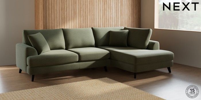 7.2.5 Buy Parker Medium Corner Chaise - Right Hand Ripple Chenille Mid Moss Green Low Retro Tapered - Dark from the Next UK online shop Click here to use our accessible website