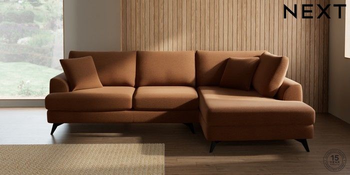 7.2.10 Buy Parker Medium Corner Chaise - Right Hand Ripple Chenille Mid Rust Brown High Metal - Black from the Next UK online shop Click here to use our accessible website
