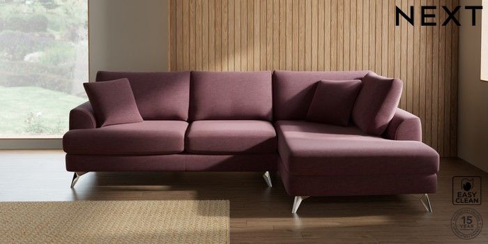 7.2.10 Buy Parker Medium Corner Chaise - Right Hand Fine Chenille Easy Clean Mid Mulberry Purple High Metal - Chrome from the Next UK online shop Click here to use our accessible website