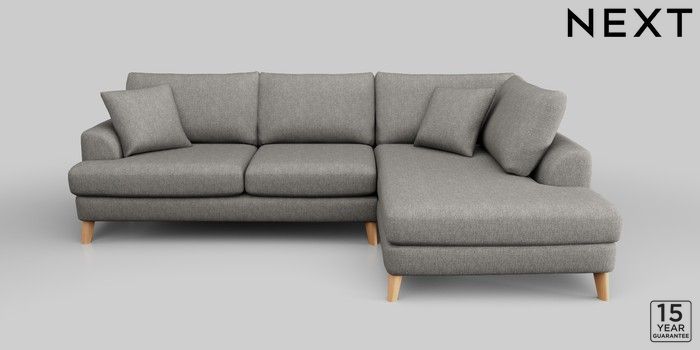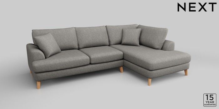 6.12.1 Buy Parker Medium Corner Chaise - Right Hand Tweedy Chenille Mid Grey Low Retro Tapered - Light from the Next UK online shop Click here to use our accessible website
