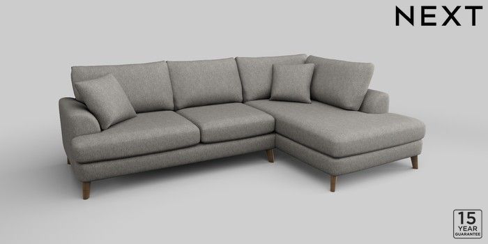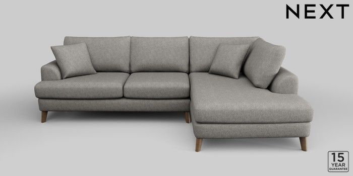6.12.1 Buy Parker Medium Corner Chaise - Right Hand Tweedy Chenille Mid Grey Low Retro Tapered - Mid from the Next UK online shop Click here to use our accessible website