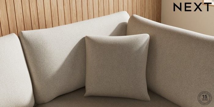 7.3.1 Buy Parker Medium Corner Chaise - Right Hand Tweedy Chenille Oyster Low Retro Tapered - Dark from the Next UK online shop Click here to use our accessible website