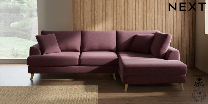 7.2.10 Buy Parker Medium Corner Chaise - Right Hand Fine Chenille Easy Clean Mid Mulberry Purple Low Retro Tapered - Light from the Next UK online shop Click here to use our accessible website