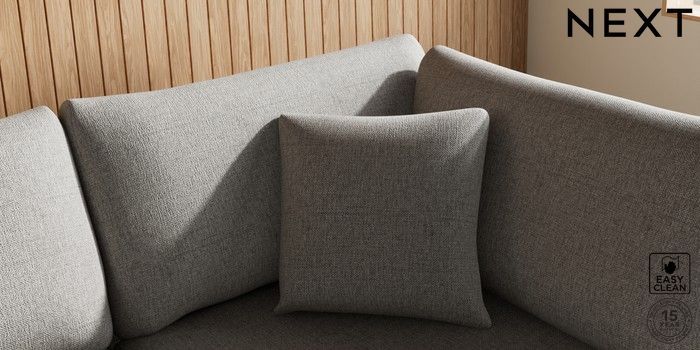 7.3.1 Buy Parker Medium Corner Chaise - Right Hand Woven Chenille Easy Clean Light Grey High Metal - Black from the Next UK online shop Click here to use our accessible website