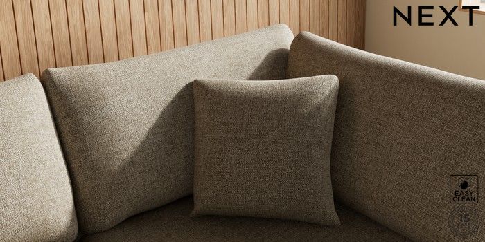 7.2.10 Buy Parker Medium Corner Chaise - Right Hand Woven Chenille Easy Clean Mid Natural High Metal - Chrome from the Next UK online shop Click here to use our accessible website