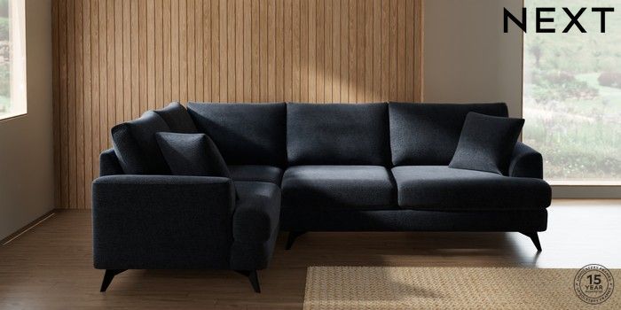 7.2.10 Buy Parker Medium Corner Sofa - Left Hand Boucle Chenille Dark Slate Blue High Metal - Black from the Next UK online shop Click here to use our accessible website