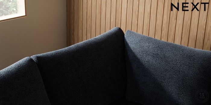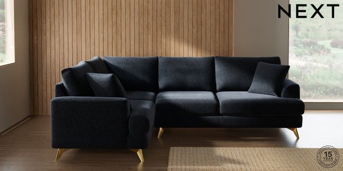 7.2.10 Buy Parker Medium Corner Sofa - Left Hand Boucle Chenille Dark Slate Blue High Metal - Brass from the Next UK online shop Click here to use our accessible website