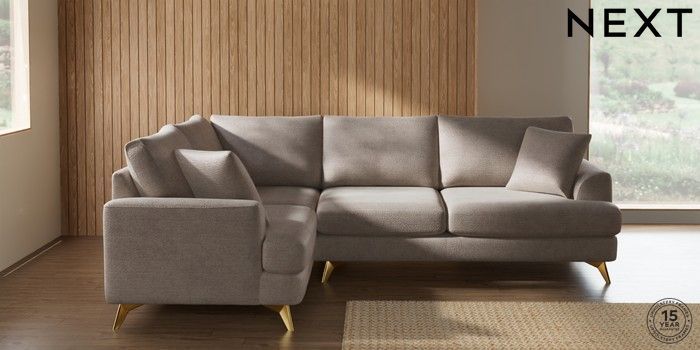 7.2.10 Buy Parker Medium Corner Sofa - Left Hand Boucle Chenille Light Natural High Metal - Brass from the Next UK online shop Click here to use our accessible website