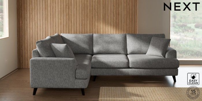 7.2.10 Buy Parker Medium Corner Sofa - Left Hand Chunky Boucle Easy Clean Light Grey Low Retro Tapered - Dark from the Next UK online shop Click here to use our accessible website