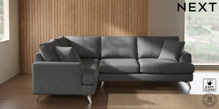 7.2.10 Buy Parker Medium Corner Sofa - Left Hand Chunky Boucle Easy Clean Mid Grey High Metal - Chrome from the Next UK online shop Click here to use our accessible website
