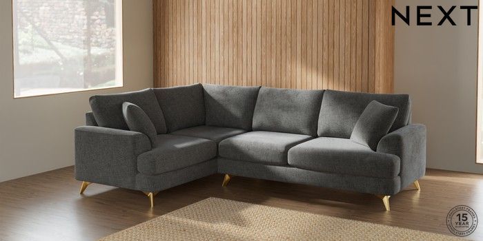 7.2.5 Buy Parker Medium Corner Sofa - Left Hand Chunky Chenille Dark Grey High Metal - Brass from the Next UK online shop Click here to use our accessible website