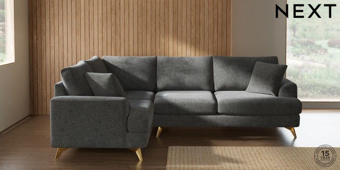 7.2.10 Buy Parker Medium Corner Sofa - Left Hand Chunky Chenille Dark Grey High Metal - Brass from the Next UK online shop Click here to use our accessible website