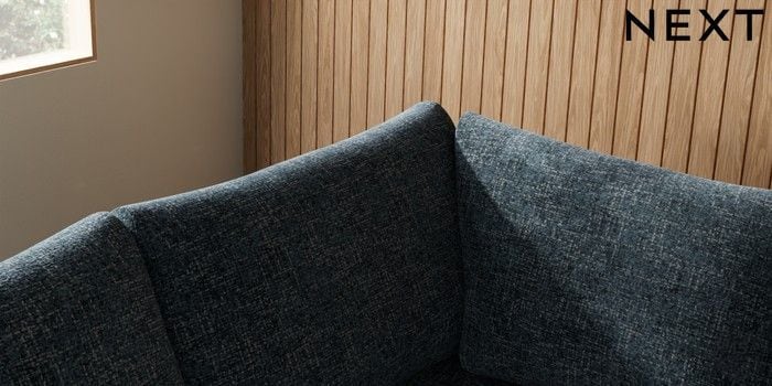 7.2.10 Buy Parker Medium Corner Sofa - Left Hand Chunky Chenille Dark Navy Blue Low Retro Tapered - Dark from the Next UK online shop Click here to use our accessible website