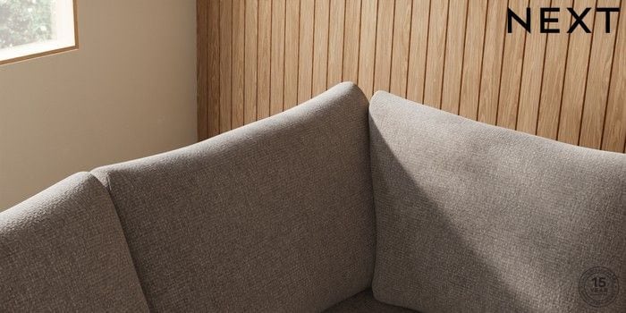 7.2.10 Buy Parker Medium Corner Sofa - Left Hand Chunky Chenille Light Dove Low Retro Tapered - Mid from the Next UK online shop Click here to use our accessible website