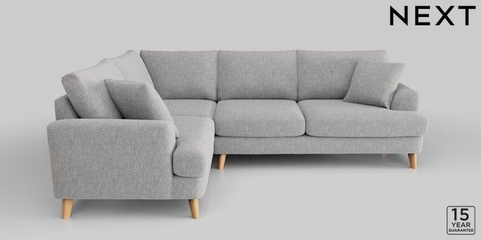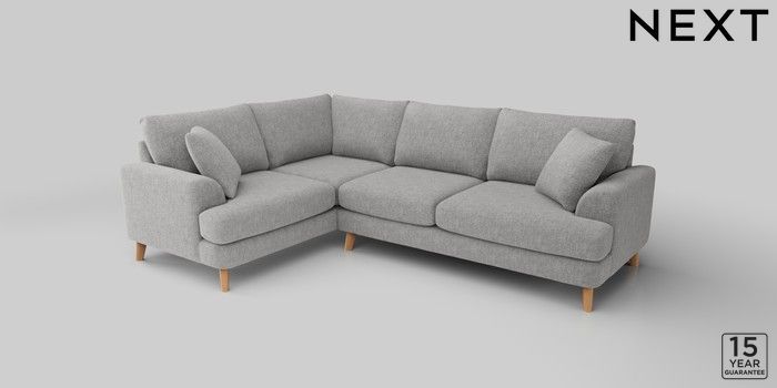 6.12.1 Buy Parker Medium Corner Sofa - Left Hand Chunky Chenille Light Grey Low Retro Tapered - Light from the Next UK online shop Click here to use our accessible website