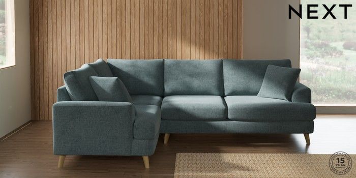7.2.10 Buy Parker Medium Corner Sofa - Left Hand Chunky Chenille Light Teal Green Low Retro Tapered - Light from the Next UK online shop Click here to use our accessible website