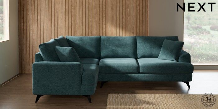 7.2.10 Buy Parker Medium Corner Sofa - Left Hand Chunky Chenille Mid Teal Green High Metal - Black from the Next UK online shop Click here to use our accessible website
