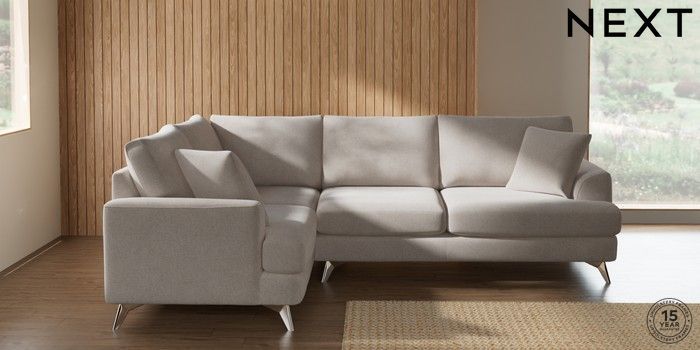 7.2.10 Buy Parker Medium Corner Sofa - Left Hand Chunky Chenille Oyster High Metal - Chrome from the Next UK online shop Click here to use our accessible website