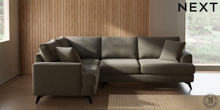7.2.10 Buy Parker Medium Corner Sofa - Left Hand Chunky Marl Light Olive Green High Metal - Black from the Next UK online shop Click here to use our accessible website