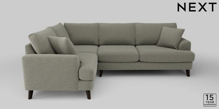 6.12.1 Buy Parker Medium Corner Sofa - Left Hand Chunky Marl Light Olive Green Low Retro Tapered - Dark from the Next UK online shop Click here to use our accessible website
