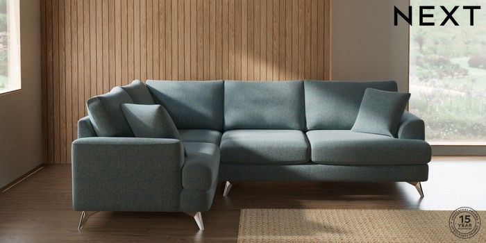 7.2.10 Buy Parker Medium Corner Sofa - Left Hand Chunky Marl Mid Blue High Metal - Chrome from the Next UK online shop Click here to use our accessible website