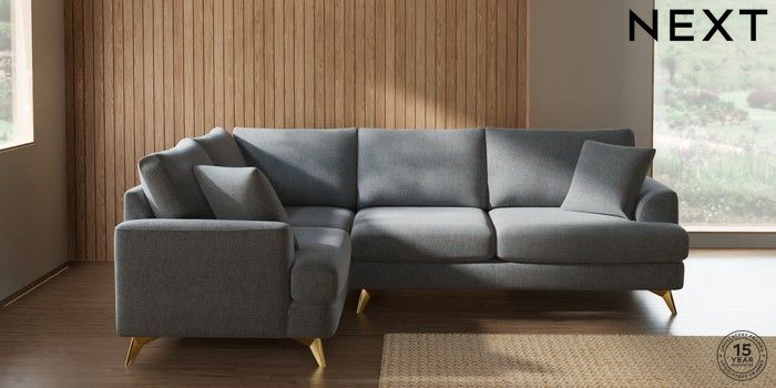 7.2.10 Buy Parker Medium Corner Sofa - Left Hand Chunky Marl Mid Grey High Metal - Brass from the Next UK online shop Click here to use our accessible website