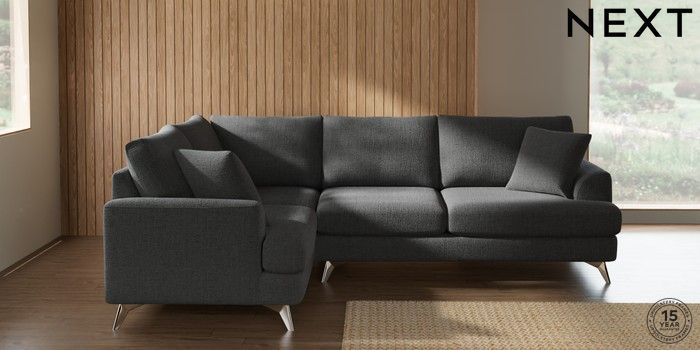 7.2.10 Buy Parker Medium Corner Sofa - Left Hand Chunky Texture Dark Grey High Metal - Chrome from the Next UK online shop Click here to use our accessible website