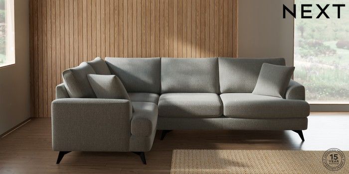 7.2.10 Buy Parker Medium Corner Sofa - Left Hand Chunky Texture Dove High Metal - Black from the Next UK online shop Click here to use our accessible website
