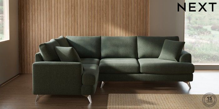 7.2.10 Buy Parker Medium Corner Sofa - Left Hand Chunky Texture Mid Forest Green High Metal - Chrome from the Next UK online shop Click here to use our accessible website