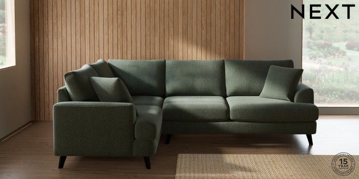 7.2.10 Buy Parker Medium Corner Sofa - Left Hand Chunky Texture Mid Forest Green Low Retro Tapered - Dark from the Next UK online shop Click here to use our accessible website