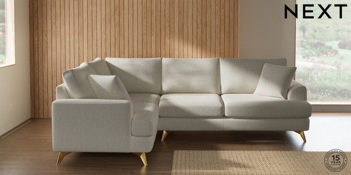 7.2.10 Buy Parker Medium Corner Sofa - Left Hand Chunky Texture Oyster High Metal - Brass from the Next UK online shop Click here to use our accessible website