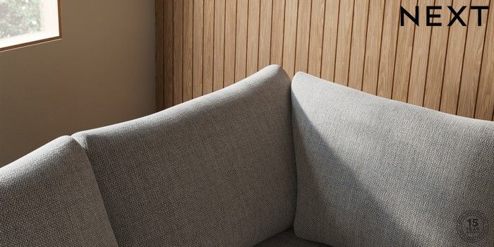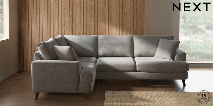 7.2.10 Buy Parker Medium Corner Sofa - Left Hand Chunky Weave Dove Grey Low Retro Tapered - Mid from the Next UK online shop Click here to use our accessible website
