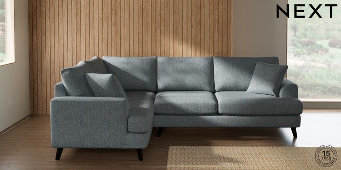7.2.10 Buy Parker Medium Corner Sofa - Left Hand Chunky Weave Mid Blue Low Retro Tapered - Dark from the Next UK online shop Click here to use our accessible website