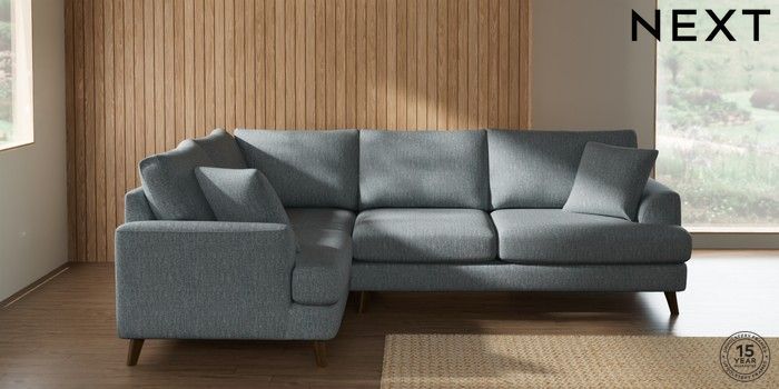 7.2.10 Buy Parker Medium Corner Sofa - Left Hand Chunky Weave Mid Blue Low Retro Tapered - Mid from the Next UK online shop Click here to use our accessible website