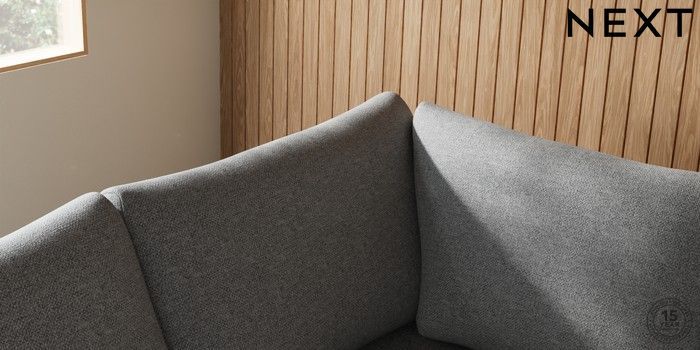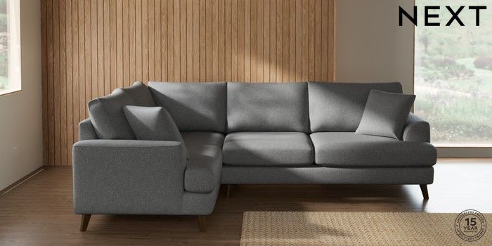 7.2.10 Buy Parker Medium Corner Sofa - Left Hand Chunky Weave Mid Grey Low Retro Tapered - Mid from the Next UK online shop Click here to use our accessible website
