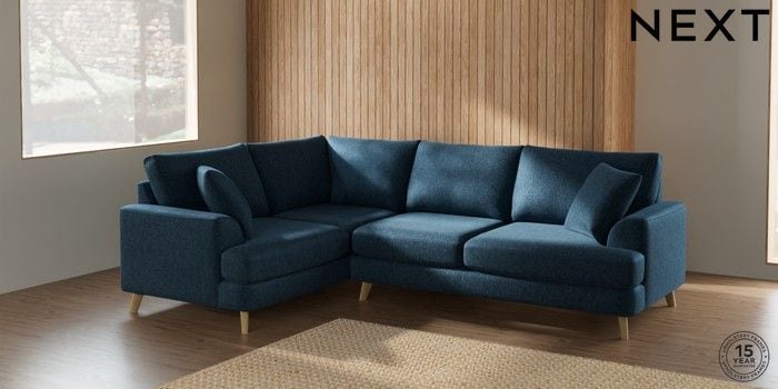 7.2.5 Buy Parker Medium Corner Sofa - Left Hand Cotswold Chenille Dark Blue Low Retro Tapered - Light from the Next UK online shop Click here to use our accessible website