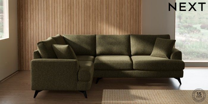 7.2.10 Buy Parker Medium Corner Sofa - Left Hand Cotswold Chenille Dark Green High Metal - Black from the Next UK online shop Click here to use our accessible website