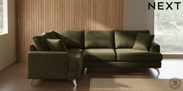 7.2.10 Buy Parker Medium Corner Sofa - Left Hand Cotswold Chenille Dark Green High Metal - Chrome from the Next UK online shop Click here to use our accessible website