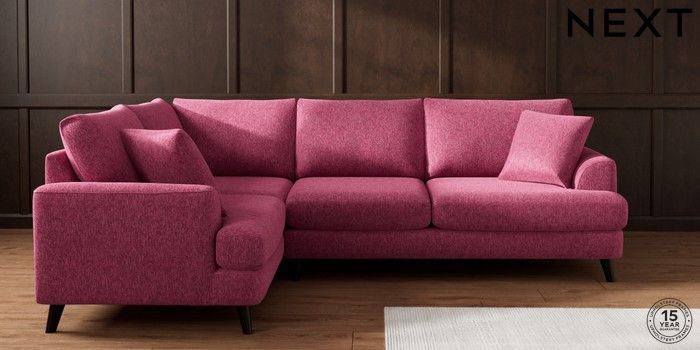7.2.10 Buy Parker Medium Corner Sofa - Left Hand Cotswold Chenille Dark Raspberry Pink Low Retro Tapered - Dark from the Next UK online shop Click here to use our accessible website