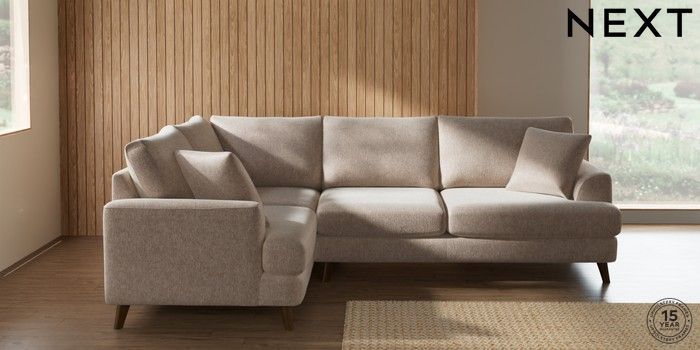 7.0.3 Buy Parker Medium Corner Sofa - Left Hand Cotswold Chenille Light Natural Low Retro Tapered - Mid from the Next UK online shop Click here to use our accessible website