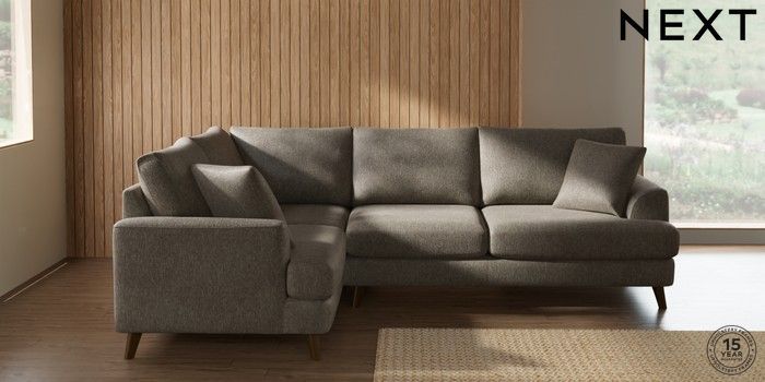 7.0.3 Buy Parker Medium Corner Sofa - Left Hand Cotswold Chenille Mid Mink Brown Low Retro Tapered - Mid from the Next UK online shop Click here to use our accessible website