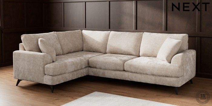 7.2.5 Buy Parker Medium Corner Sofa - Left Hand Distressed Velour Mid Natural High Metal - Black from the Next UK online shop Click here to use our accessible website