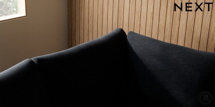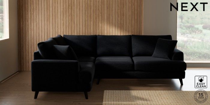 7.2.10 Buy Parker Medium Corner Sofa - Left Hand Fine Chenille Easy Clean Black Low Retro Tapered - Dark from the Next UK online shop Click here to use our accessible website