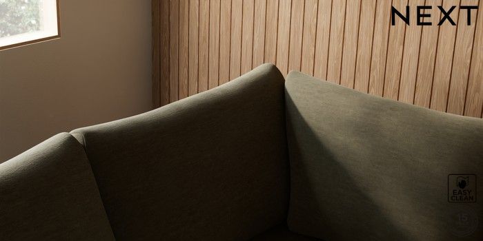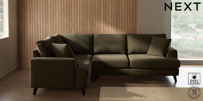 7.2.10 Buy Parker Medium Corner Sofa - Left Hand Fine Chenille Easy Clean Dark Moss Green Low Retro Tapered - Dark from the Next UK online shop Click here to use our accessible website