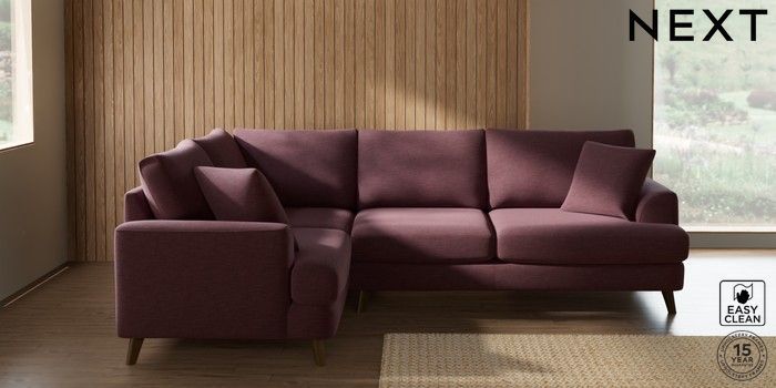 7.2.10 Buy Parker Medium Corner Sofa - Left Hand Fine Chenille Easy Clean Mid Mulberry Purple Low Retro Tapered - Mid from the Next UK online shop Click here to use our accessible website