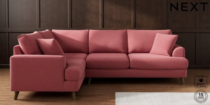 7.2.10 Buy Parker Medium Corner Sofa - Left Hand Fine Chenille Easy Clean Mid Pink Low Retro Tapered - Mid from the Next UK online shop Click here to use our accessible website