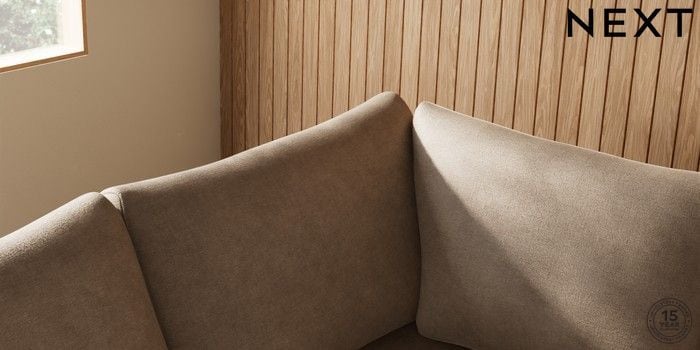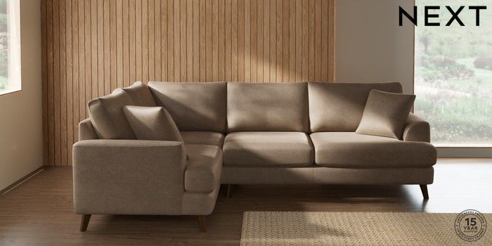 7.2.10 Buy Parker Medium Corner Sofa - Left Hand Luxe Chenille Mid Camel Beige Low Retro Tapered - Mid from the Next UK online shop Click here to use our accessible website