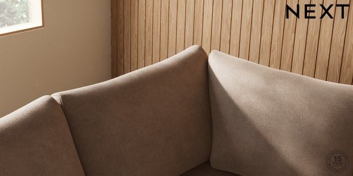 7.2.10 Buy Parker Medium Corner Sofa - Left Hand Luxe Chenille Mid Natural High Metal - Chrome from the Next UK online shop Click here to use our accessible website